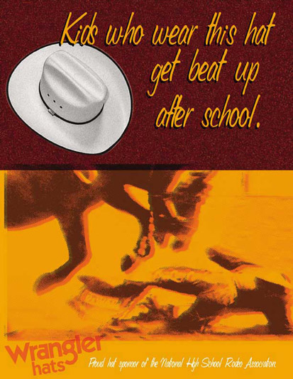 Wrangler jeans are practically the official uniform of rodeo cowboys. The fun challenge is finding new, unexpected ways to remind rodeo fans.