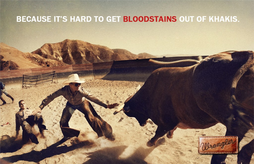 Commercial leveraging the “reputation” Wrangler has established in the rodeo arena.